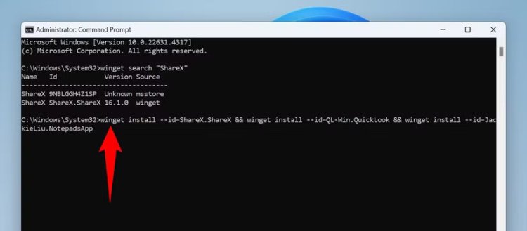 Jalankan perintah pencarian di atas untuk menemukan ID semua aplikasi yang ingin Anda instal. Setelah Anda mengumpulkan ID yang diperlukan, jalankan perintah berikut. Di sini, ganti "App1," "App2," dan "App3" dengan ID aplikasi yang telah Anda catat.