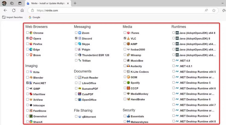 Tidak seperti aplikasi lainnya, Ninite tidak bergantung pada baris perintah. Alat ini memungkinkan Anda memilih aplikasi yang ingin diinstal lalu membuat penginstal grafis khusus yang menginstal aplikasi tersebut di sistem Anda.