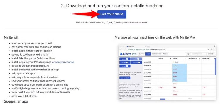 Setelah memilih aplikasi, gulir ke bawah ke bagian "Download and Run Your Custom Installer/Updater". Klik tombol "Get Your Ninite" untuk mengunduh penginstal yang akan menginstal aplikasi pilihan Anda.
