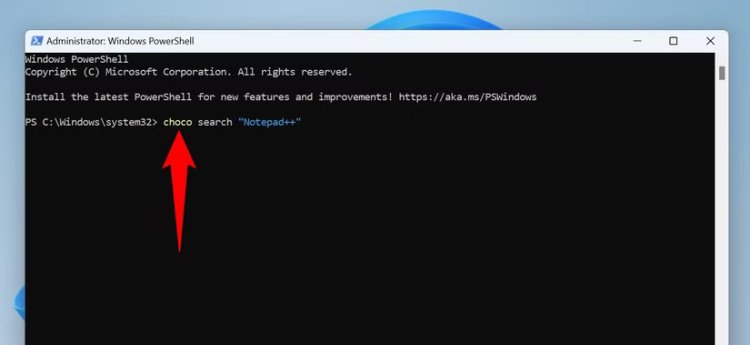 Setelah penginstalan selesai, tutup dan luncurkan kembali PowerShell dengan hak admin . Kemudian, gunakan perintah berikut untuk menemukan aplikasi yang ingin Anda instal. Ganti "NamaAplikasi" dengan nama aplikasi Anda.