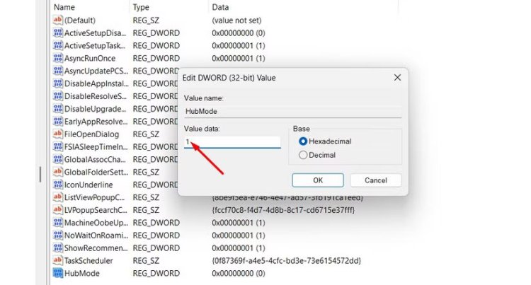 Beri nama nilai HubMode. Kemudian, klik dua kali nilai tersebut, ketik dengan nama 1 di kolom Data nilai, lalu klik "OK."