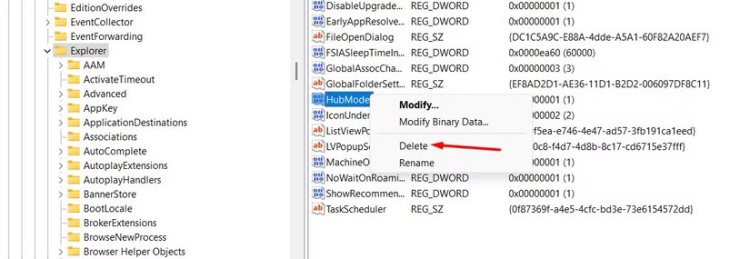 Di masa mendatang, jika Anda ingin membatalkan perubahan, buka nilai "HubMode" yang Anda buat, klik kanan, dan pilih "Delete".